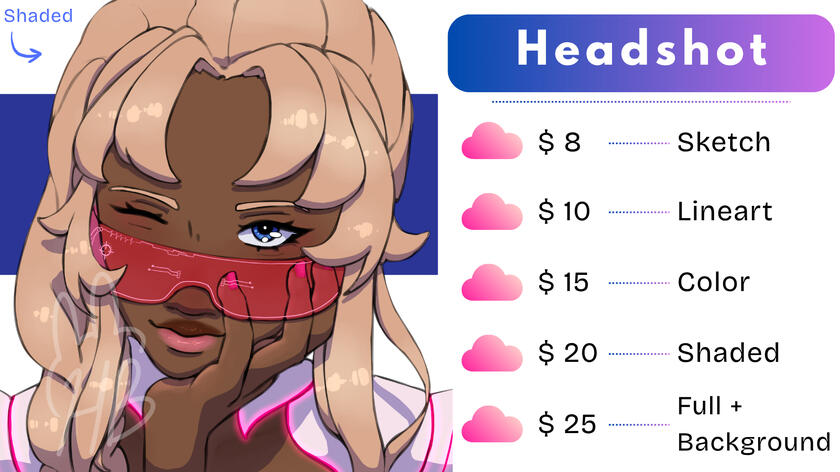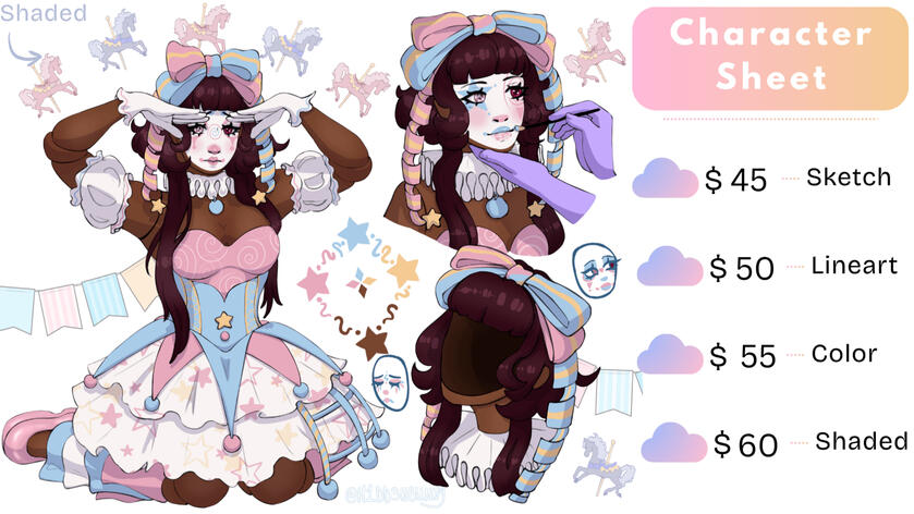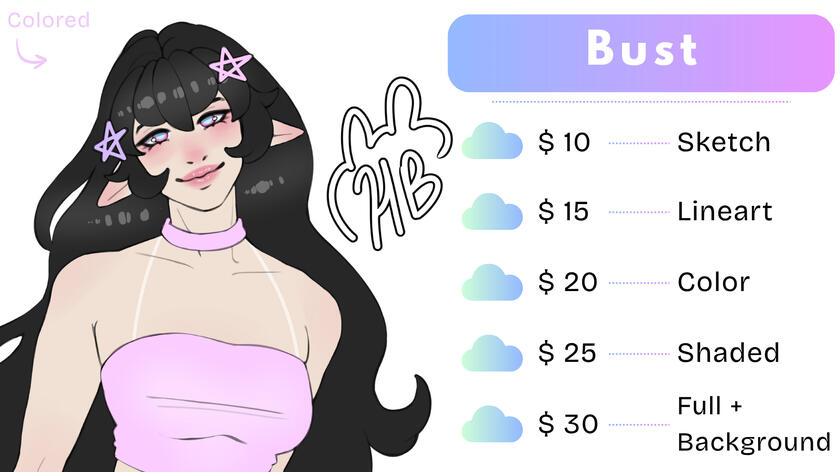 ⋆˙⟡ Headshots 〰 8-25 USD⋆˙⟡ Bust 〰 10-35 USD⋆˙⟡ Half Body 〰 15-35 USD⋆˙⟡Full Body 〰 45-60 USD⋆˙⟡ Character Sheet 〰 25-40 USD
